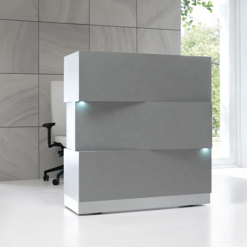 Escritorio de recepción frontal para salón de belleza, diseño moderno, piedra Artificial Popular, blanco brillante, minipeluquería