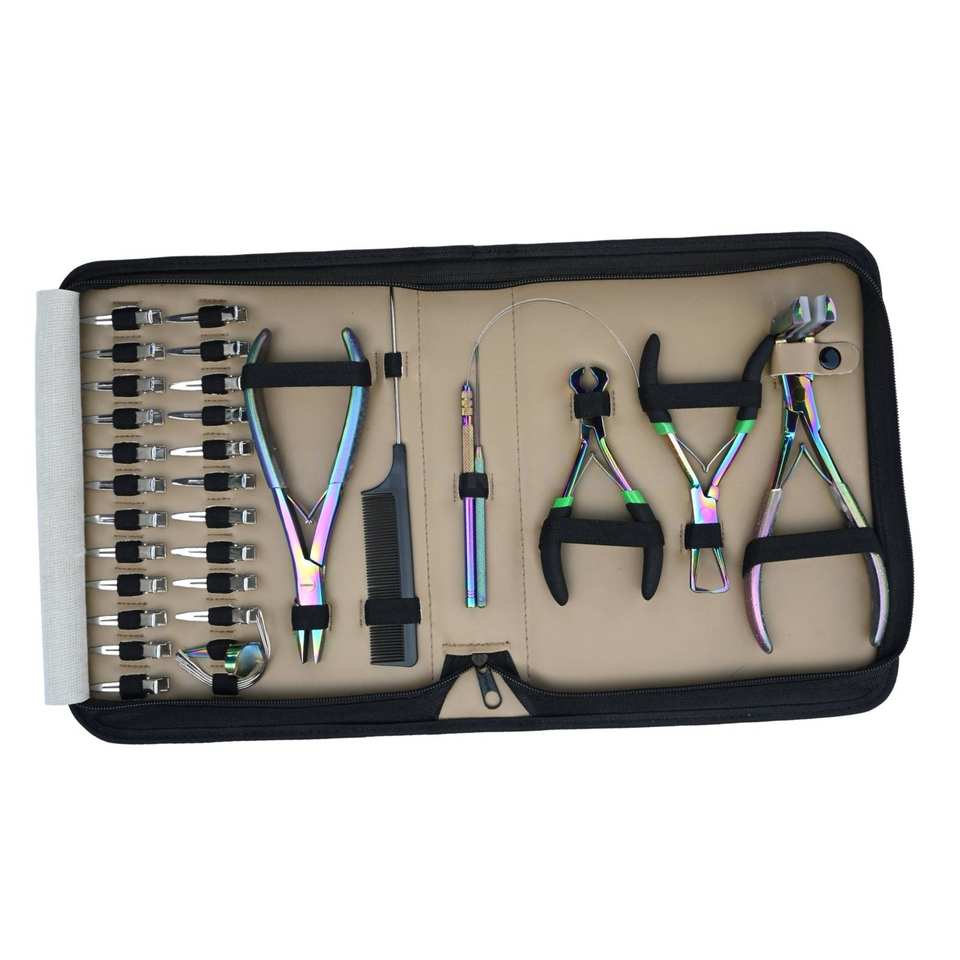 Juego de Accesorios para Extensiones de Cabello de Calidad Profesional, Herramienta para Extensiones Adhesivas, Pinza para Cuentas Planas, Removedor de Cuentas, Cortador de Queratina, Anillo de Cierre y Gancho