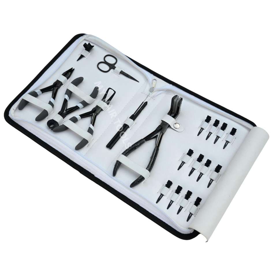Nombre del Producto:Kit de herramientas para la aplicación de extensiones de cabello con alicates para engarzar cuentas