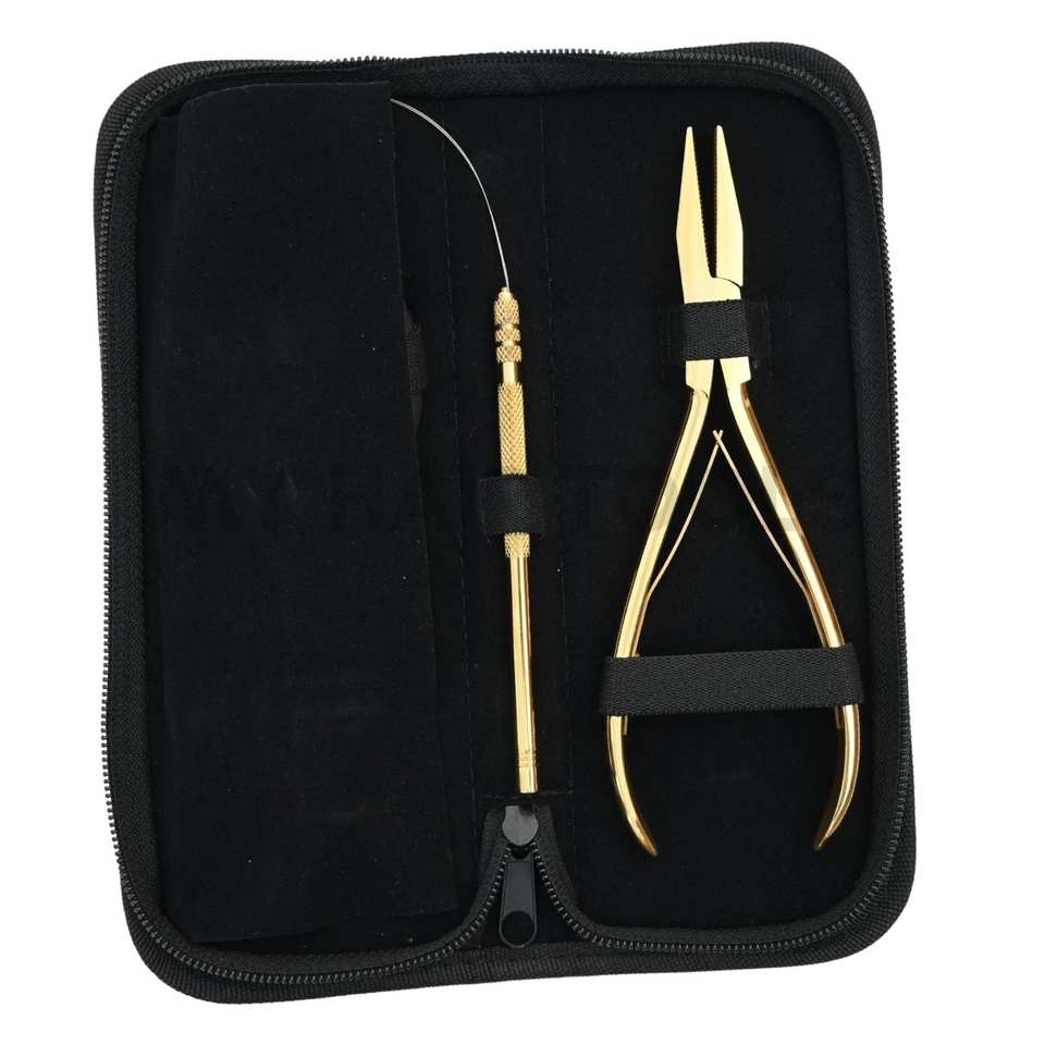 Kit de herramientas para extensiones de cabello: alicates de crimpado de dientes planos