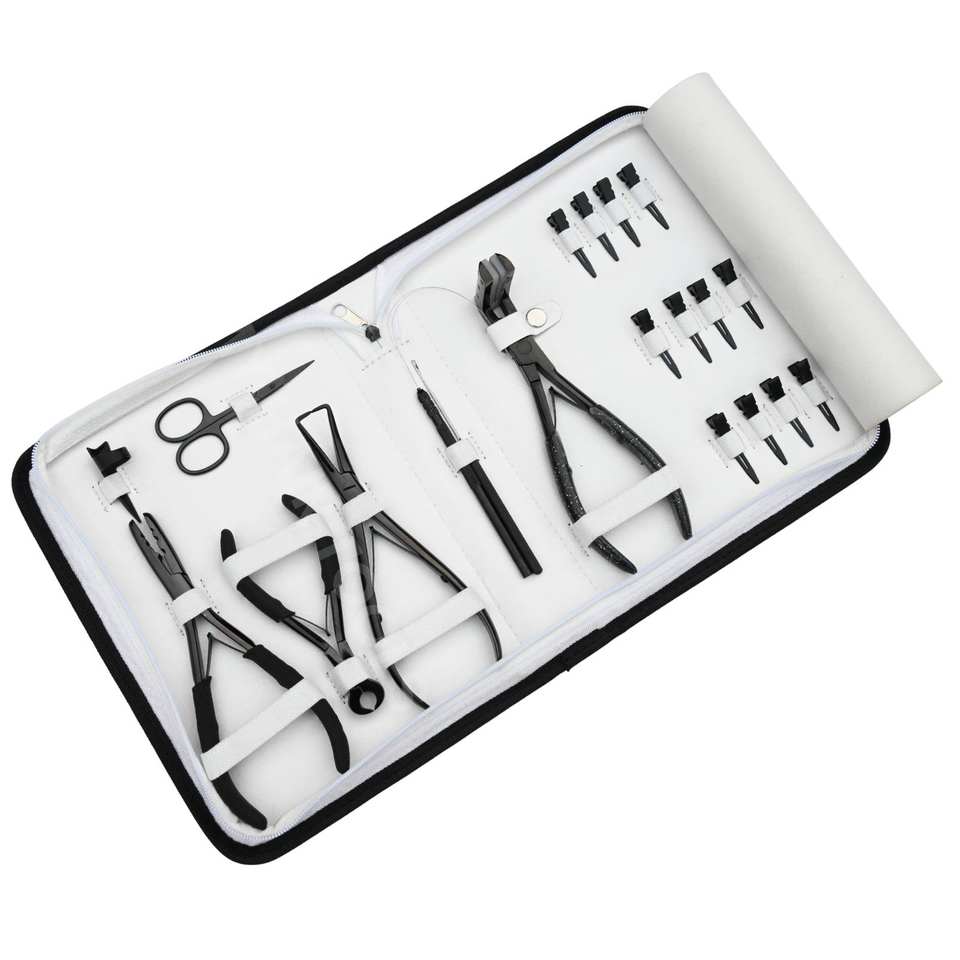 1 estuche de alicates para extensiones de cabello con microperlas, gancho de bucle y 12 clips