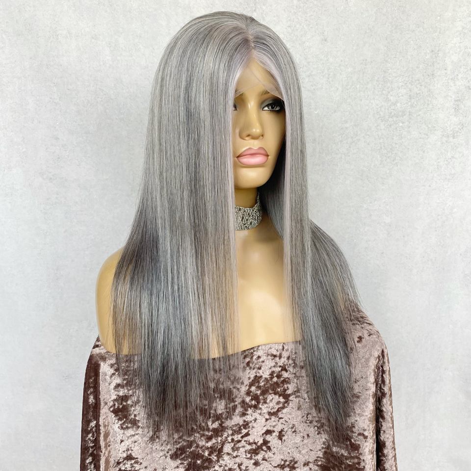 Pelucas de Cabello Humano Europeo Kosher, Color Gris Blanco Natural, sin Pegamento, con Encaje HD Completo, para Mujeres Mayores con Pérdida de Cabello