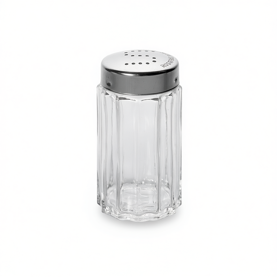 Salero Tradicional de Vidrio con Tapa Metálica para Uso en la Cocina