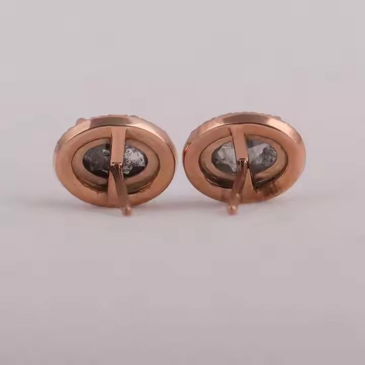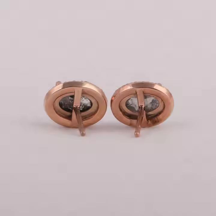 Pendientes de diamantes ovalados con corte de rosa de sal y pimienta, tachuelas de diamantes Halo hechas en laboratorio, joyería de aniversario para regalo