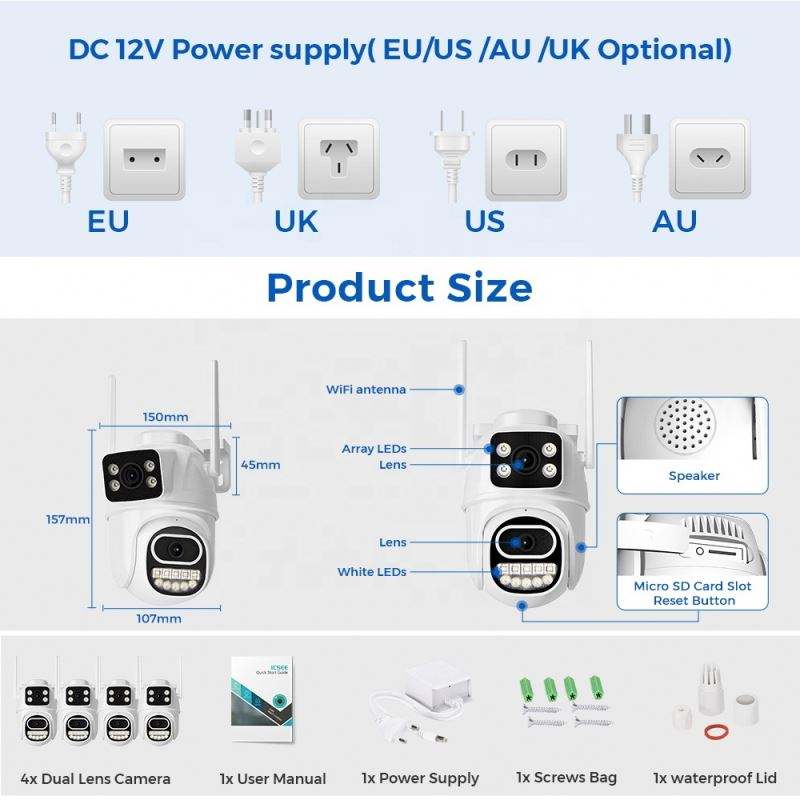 PAN-TILT, Visión nocturna, De Audio de dos vías, Humanos de seguimiento de movimiento, Detección de movimiento, Impermeable / a prueba de mal tiempoCaracterísticas especiales