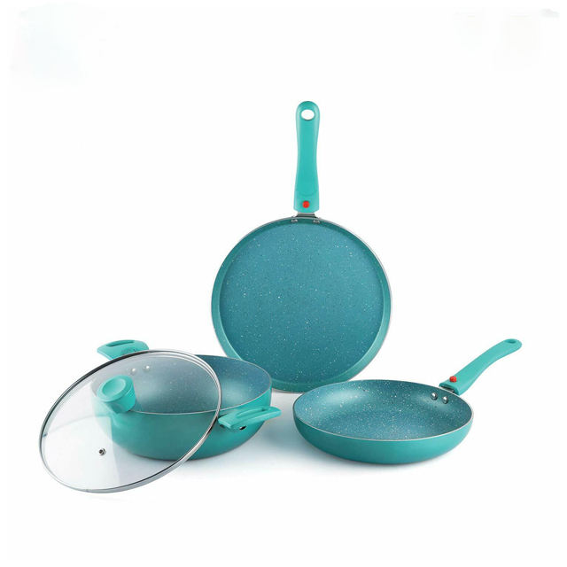 Juego de utensilios de cocina con recubrimiento de cerámica antiadherente, sartén con base de inducción, cazuelas en color jade negro para cocina, muestra de aluminio