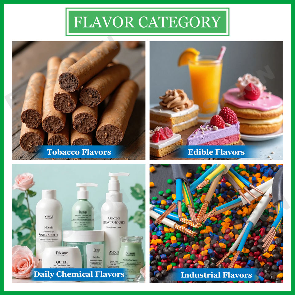 Sabor diario, Sabor de la comida, Sabor industrial, Sabor a tabaco, Perfumes y Fragancias y Aroma LíquidoAplicación