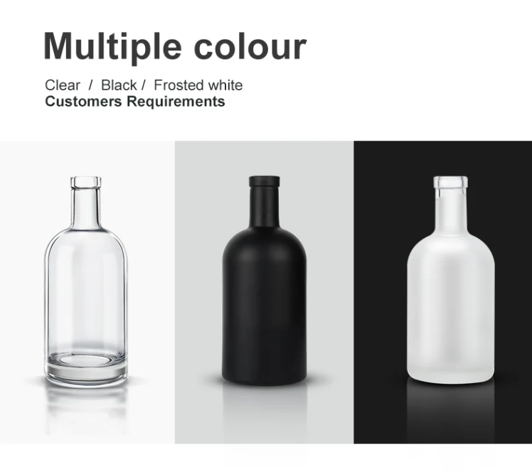 Embalaje por caja estándar y palé. Tamaño de muestra redondo vacío 750ml 1000ml botella de vodka precio 1 litro 250ml 500ml 750ml botella de vidrio de licor de vino personalizada con tapa