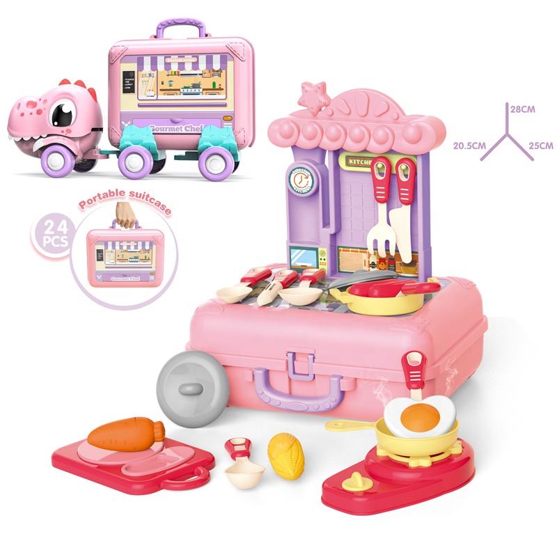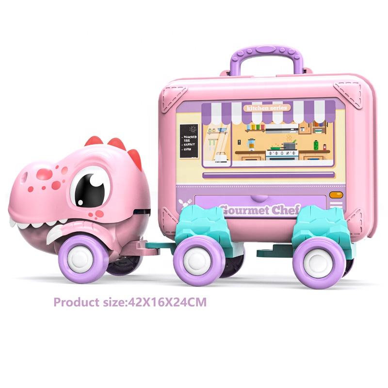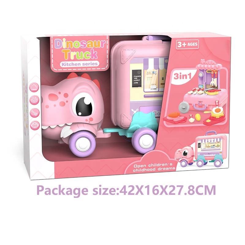 Samtoy-vajilla de cocina de juego de simulación para niñas, juguete de cocina de dinosaurio Rosa 3 en 1 con coche de fricción, 24 Uds.