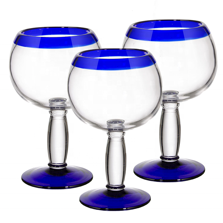 Nombre del Producto:Copa de vino Amazon Hot Sale Balloon, copa de ginebra con borde azul