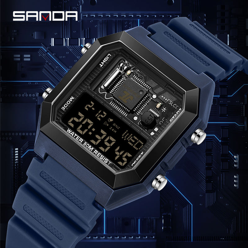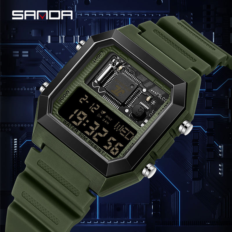 Sanda 6216 Relojes digitales con función luminosa Reloj despertador Sistema de 12/24 horas Cronómetro de Cuenta Regresiva Reloj resistente al agua a prueba de golpes