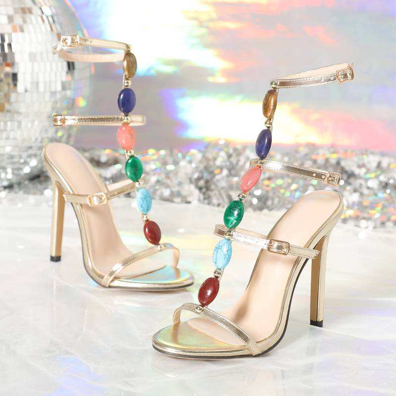 Sandalias de Tacón Alto con Pedrería, Nuevas Sandalias de Tacón para Mujer
