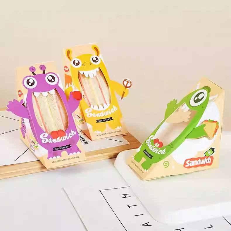 Caja para Sándwiches Desechable, Caja Moderna para Empacar Sándwiches con Ventana, Caja de Cartón para Sándwiches Personalizada