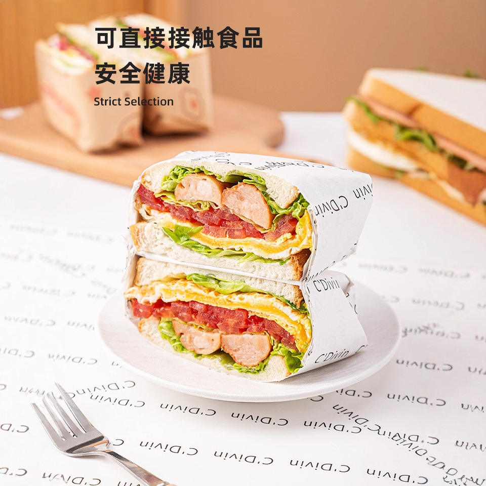 Papel para Envolver Sándwiches, 50 Hojas, Pulpa Virgen, Antigrasa, Grado Alimenticio, Embalaje para Panadería