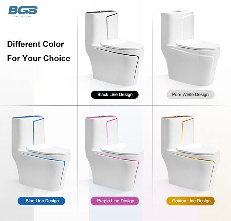 Inodoros Sanitarios WC de Cerámica de una Pieza Diseño Línea Dorada para Baño Color Oro y Blanco