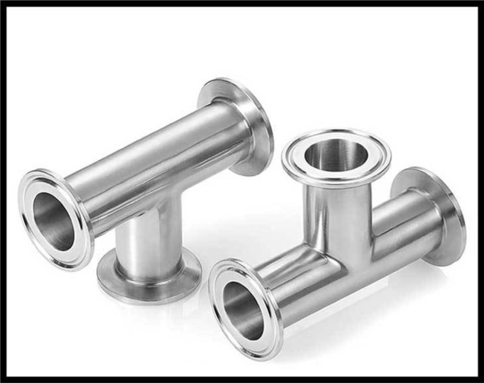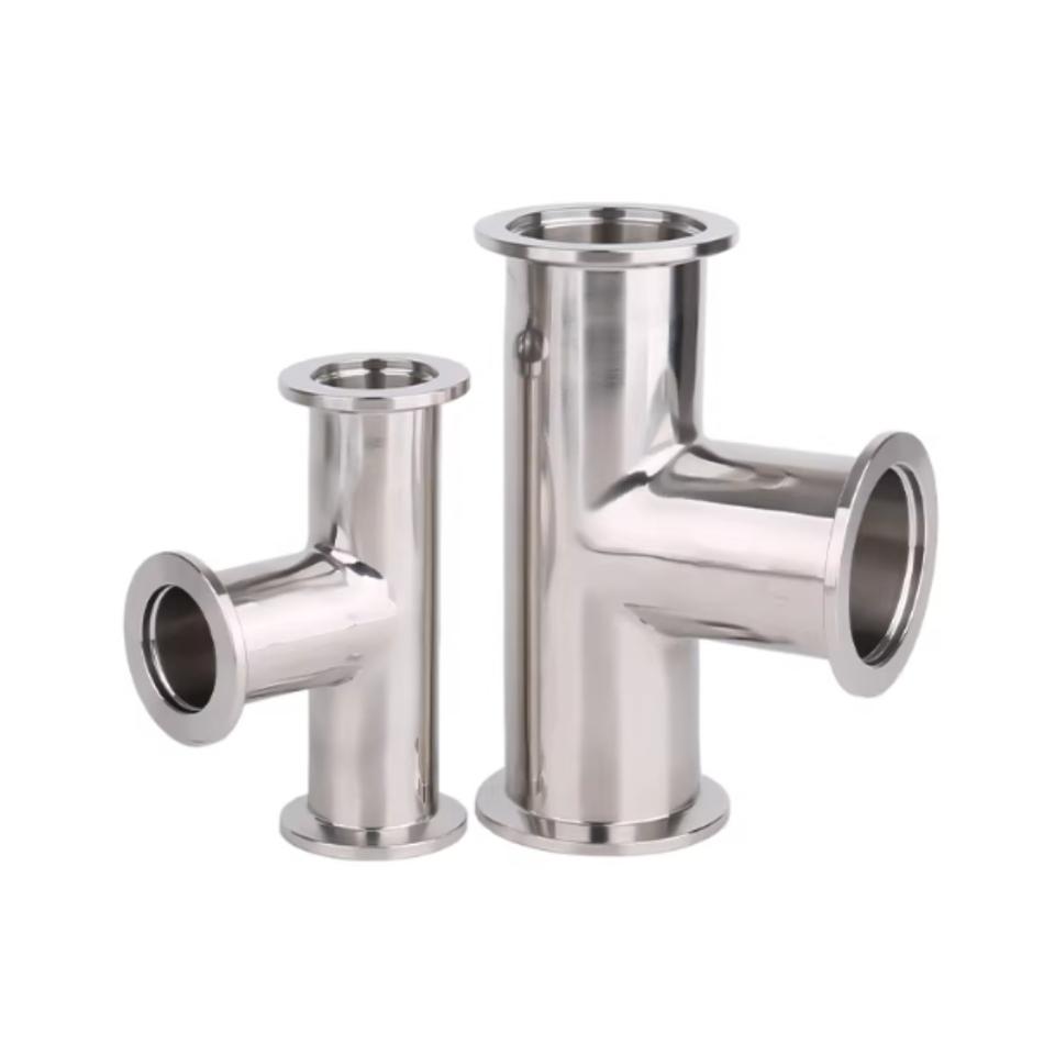 Conexión de Tubería de Tres Vías Tipo T de Grado Sanitario, Acero Inoxidable, Conexión Rápida con Abrazadera, Acabado Espejo Interno y Externo