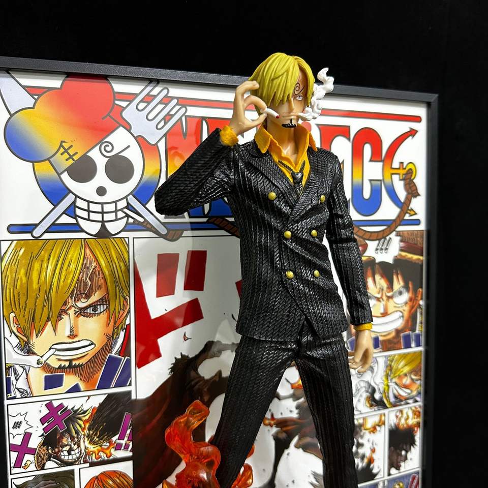 Diorama 3D Sanji con Efecto de Llama, Figura en Capas, Fondo de Cómic, Arte de Pared Enmarcado, Regalo Premium