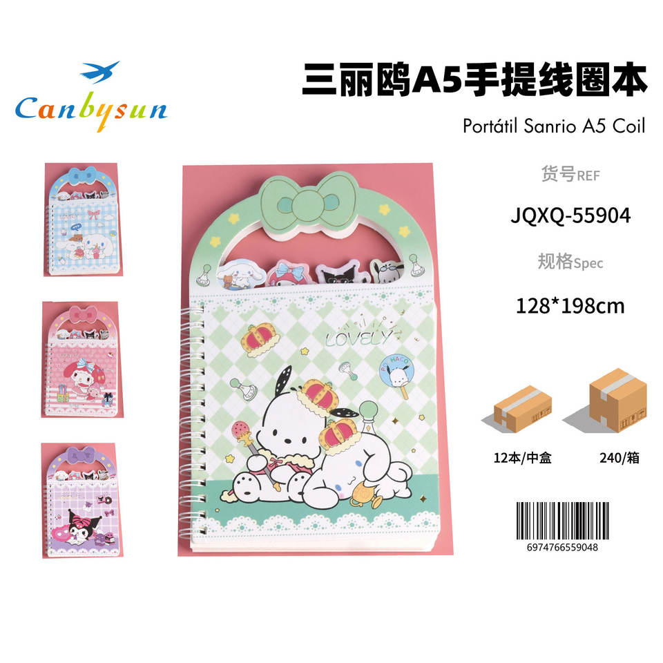Cuaderno portátil Sanrio A5 Coil 128*198cm cubierta de cuero 100gsm planificador diario de papel offset con encuadernación térmica de hojas sueltas