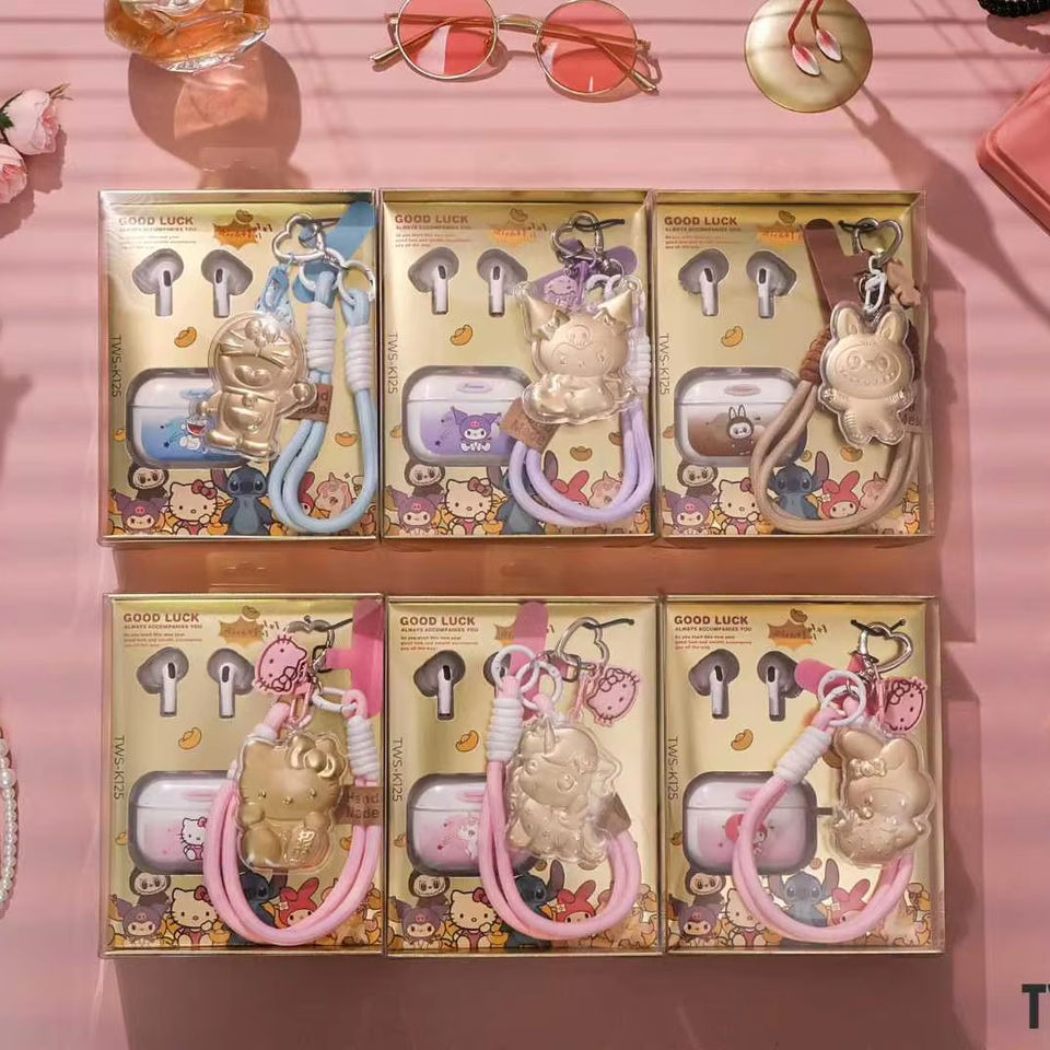 Audífonos Bluetooth TWS con Diseño de Sanrio Gold Style, Hello Kitty, Kuromi, My Melody, Auriculares Inalámbricos de Dibujos Animados