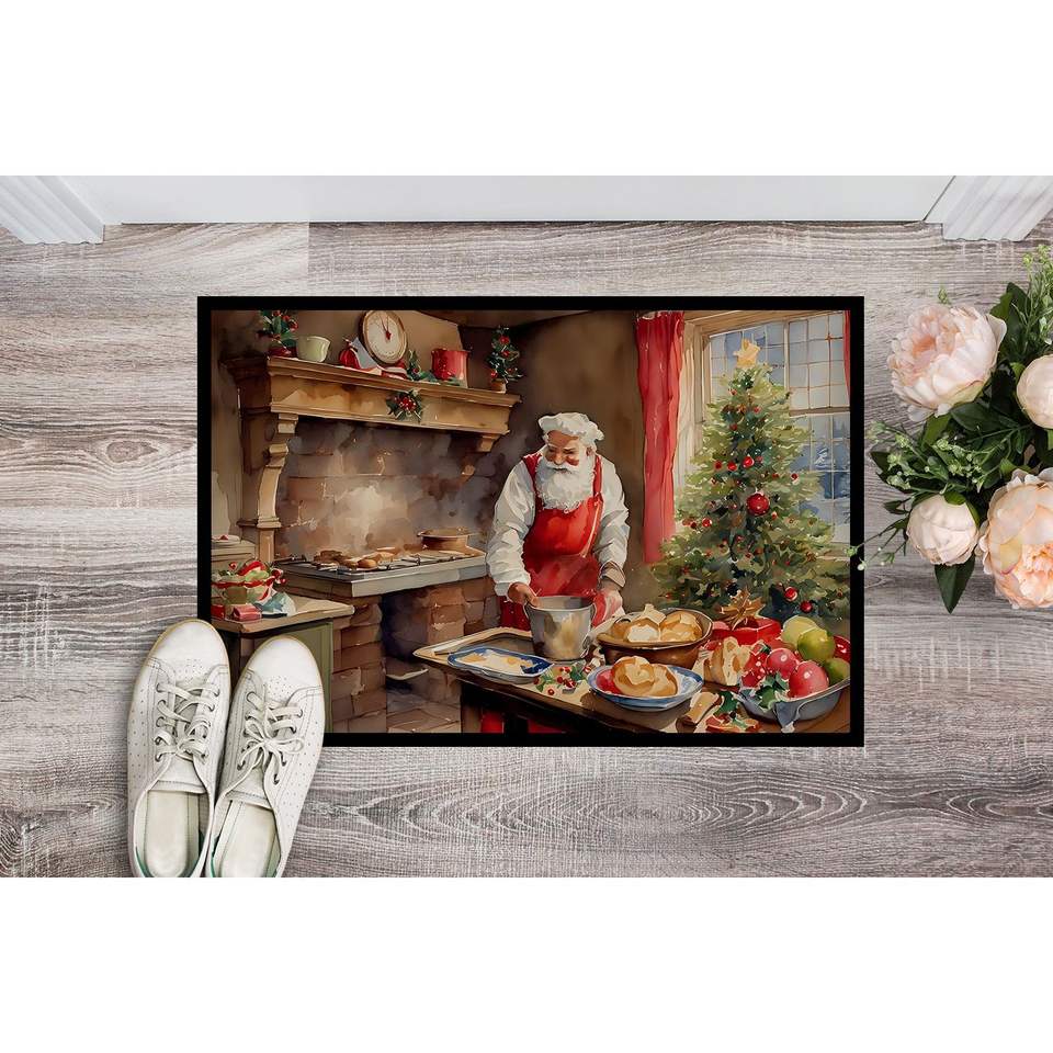 Felpudo de Papá Noel con galletas antideslizante para interiores/exteriores, alfombra lavable de pila baja, 24H X 36W, alfombrilla para puerta Delantera para entrada