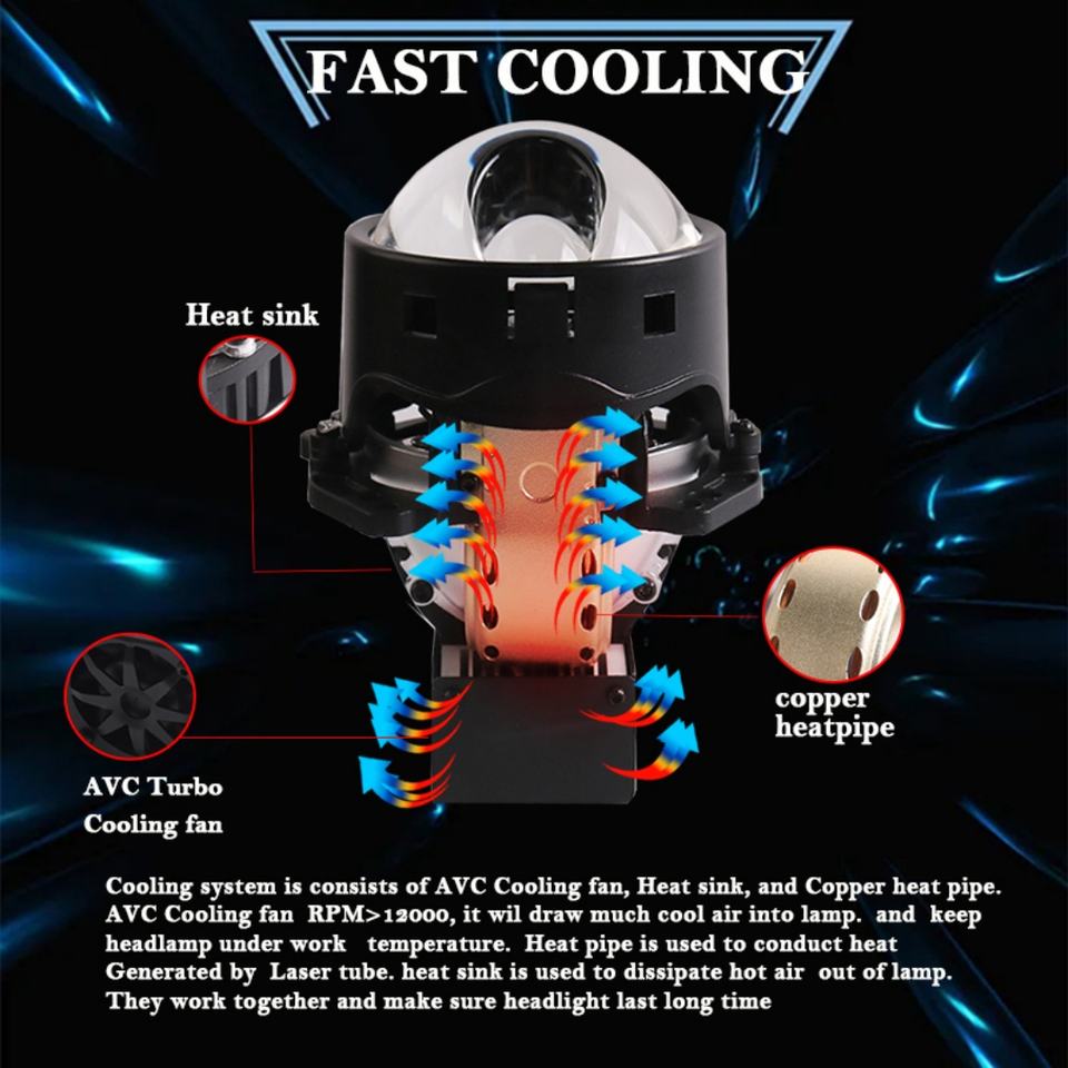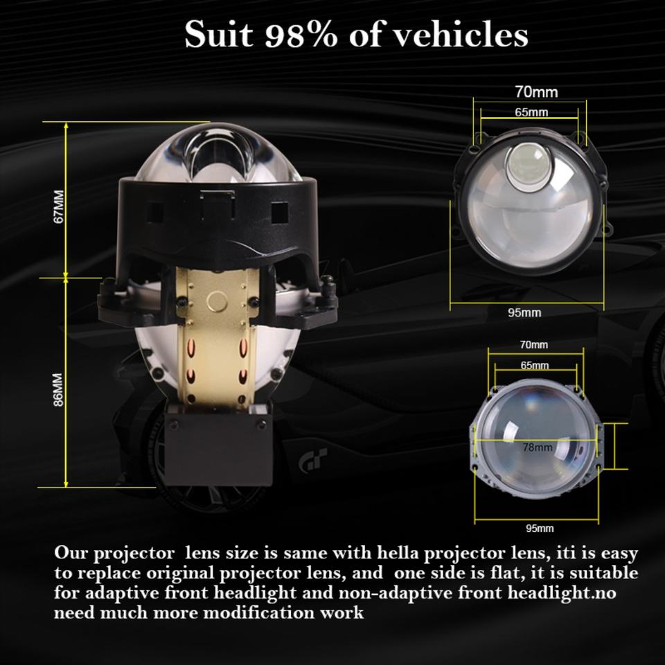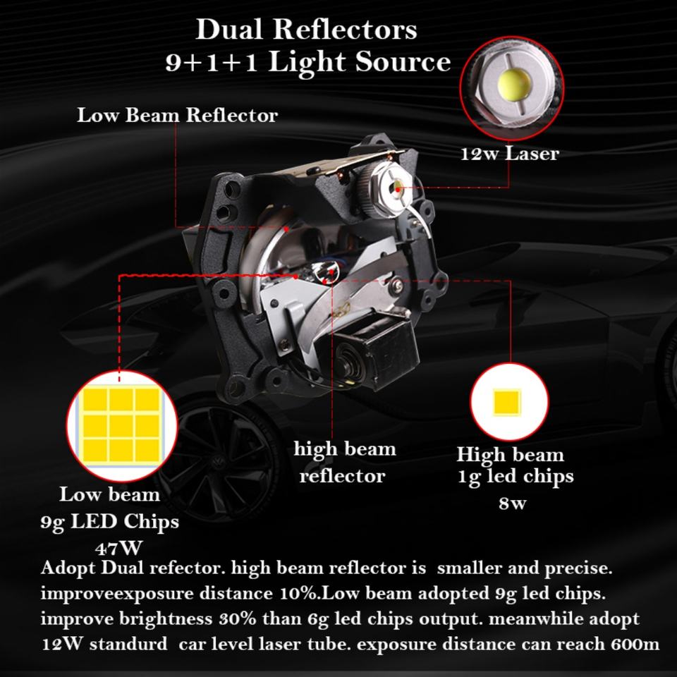 Sanvi A8L+ Faro Delantero con Lente de Proyector Bi-LED de 3 Pulgadas, Lámpara Láser para Auto de 12V 5500K, LED Súper Brillante para BMW, Modelo Universal