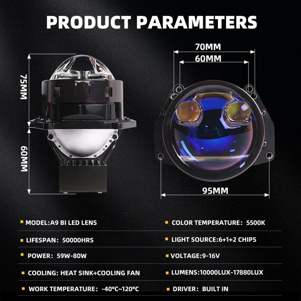 Sanvi F55, Lente de Proyector para Auto de Nuevo Diseño, Lámpara Automotriz de 80W de Alta Potencia, Faros LED de 3 Pulgadas, Accesorios de Mejora