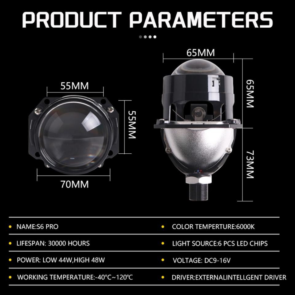 Tipo de producto:Proyector LED S6 Pro con lente para faro