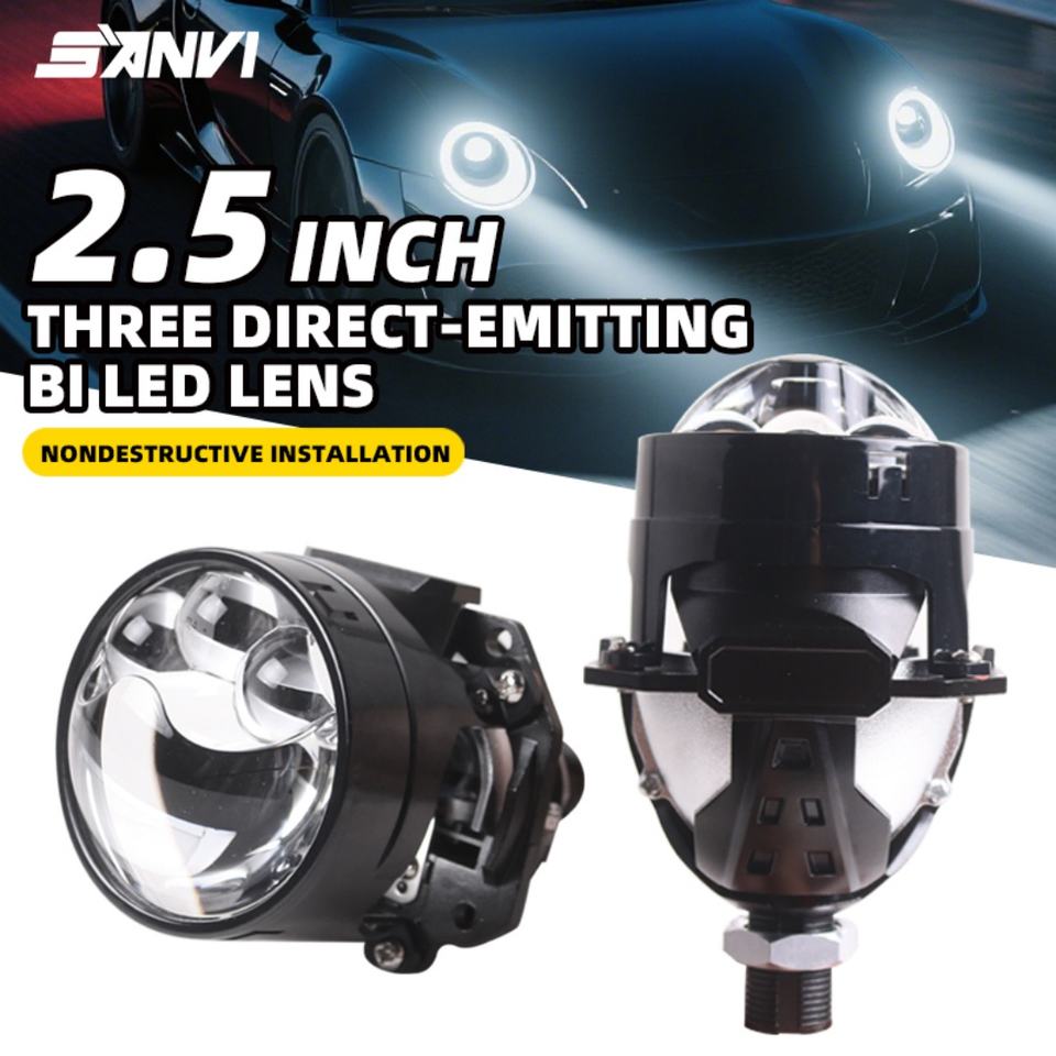 Lente de Proyector Láser Bi-LED Sanvi S63 de 2.5 Pulgadas, Faro LED, Proyector Bi-LED Universal para Automóvil