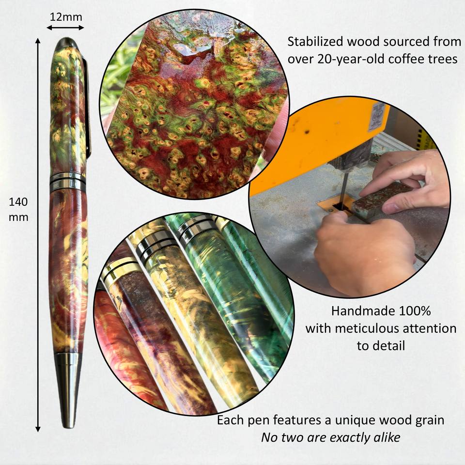 Colección Zafiro: Bolígrafo de Madera Estabilizada con Cuerpo de Resina Verde-Rojo-Azul, Lujoso, Hecho a Mano, 0.7mm, Regalo Empresarial, Bolígrafo de Recuerdo