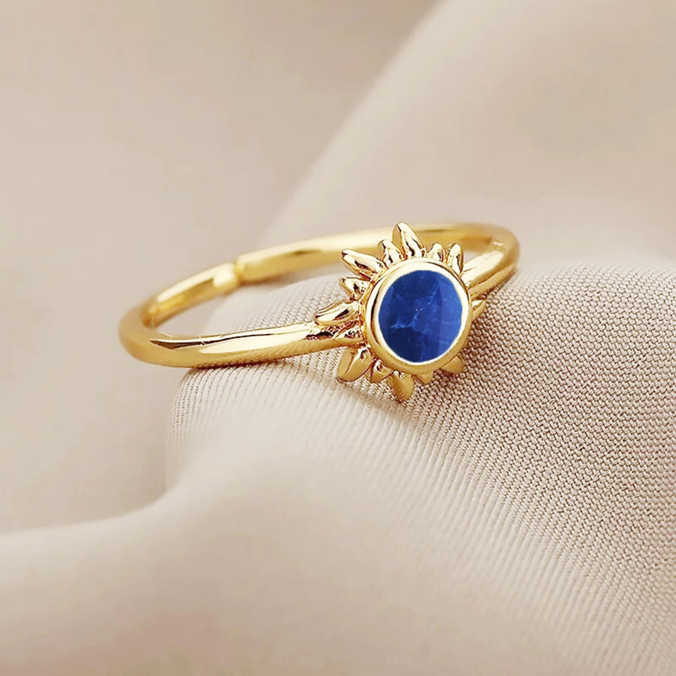 Palabra clave:Anillo de plata 925 birthstone celestial del anillo del motivo del sol