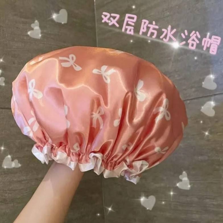 Gorro de ducha de satén con estampado floral, impermeable, de doble capa, para ducharse y bañarse