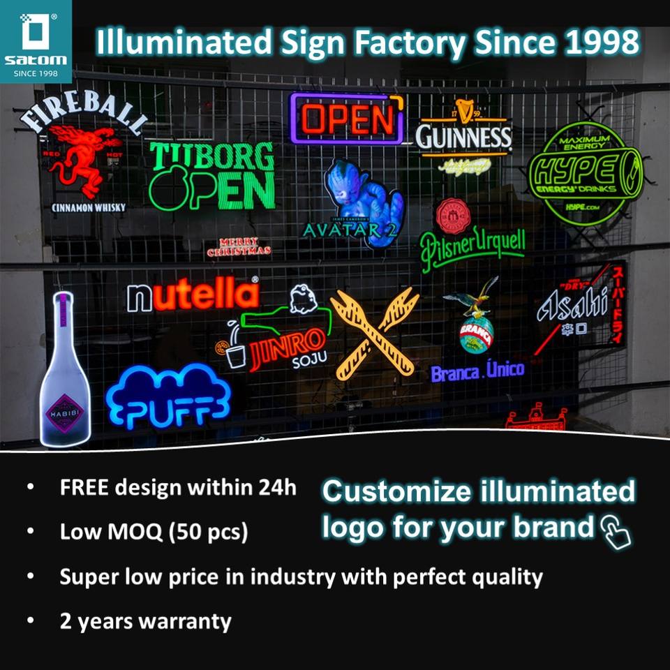 Satom venta al por mayor personalizado cerveza neón signo personalizado vino whisky Vodka Ron Gin Tequila bebidas cócteles neón signo