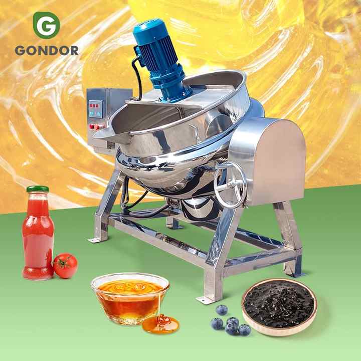 Hervidor eléctrico de acero inoxidable motorizado de alta eficiencia con camisa para salsa de jarabe hirviendo dulces