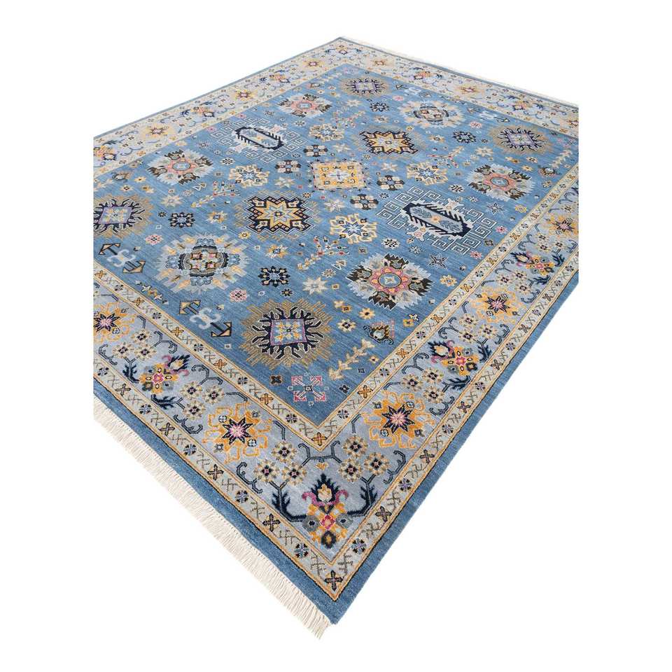 Alfombras Clásicas de Lana Azul Savana, Anudadas a Mano, con Diseño de Medallón Rectangular, Rompecabezas de Diamantes y Patrones Abstractos para el Hogar y el Pasillo, Modelo EPR-1506