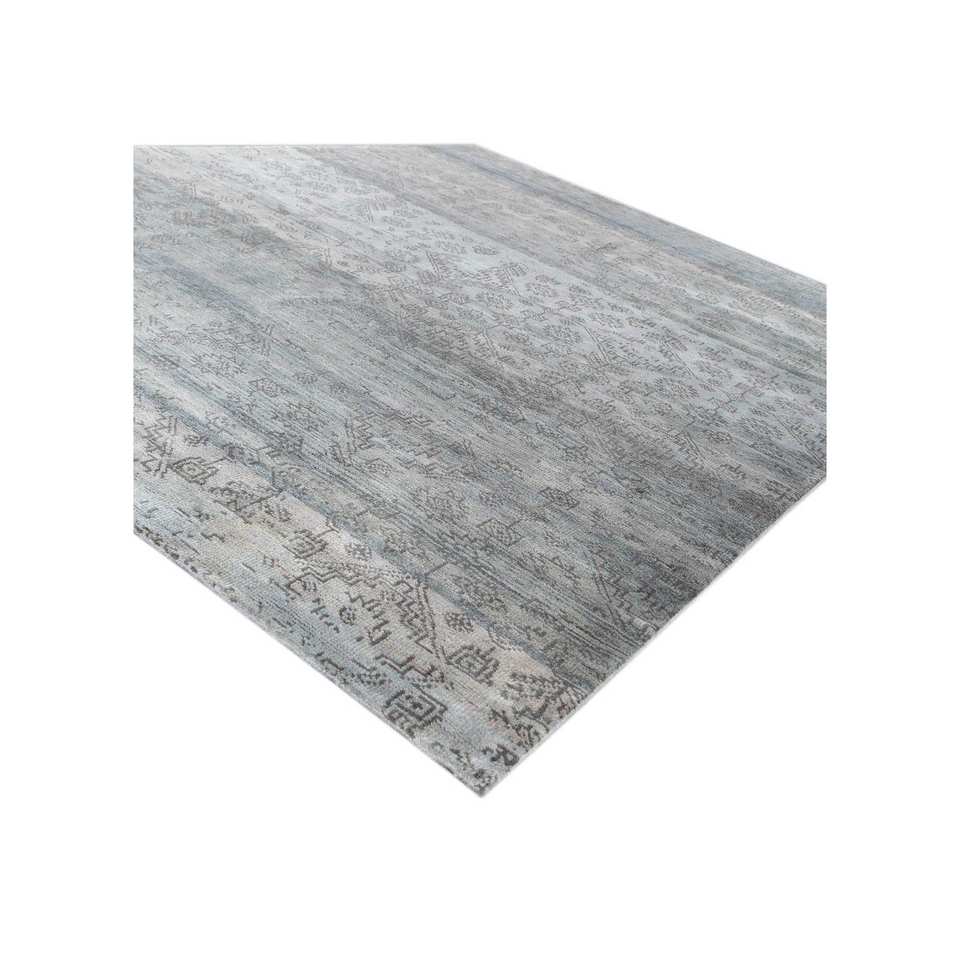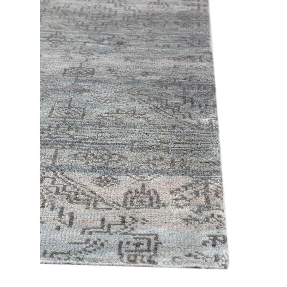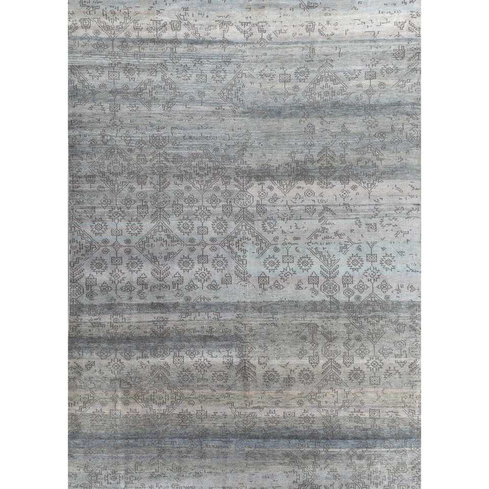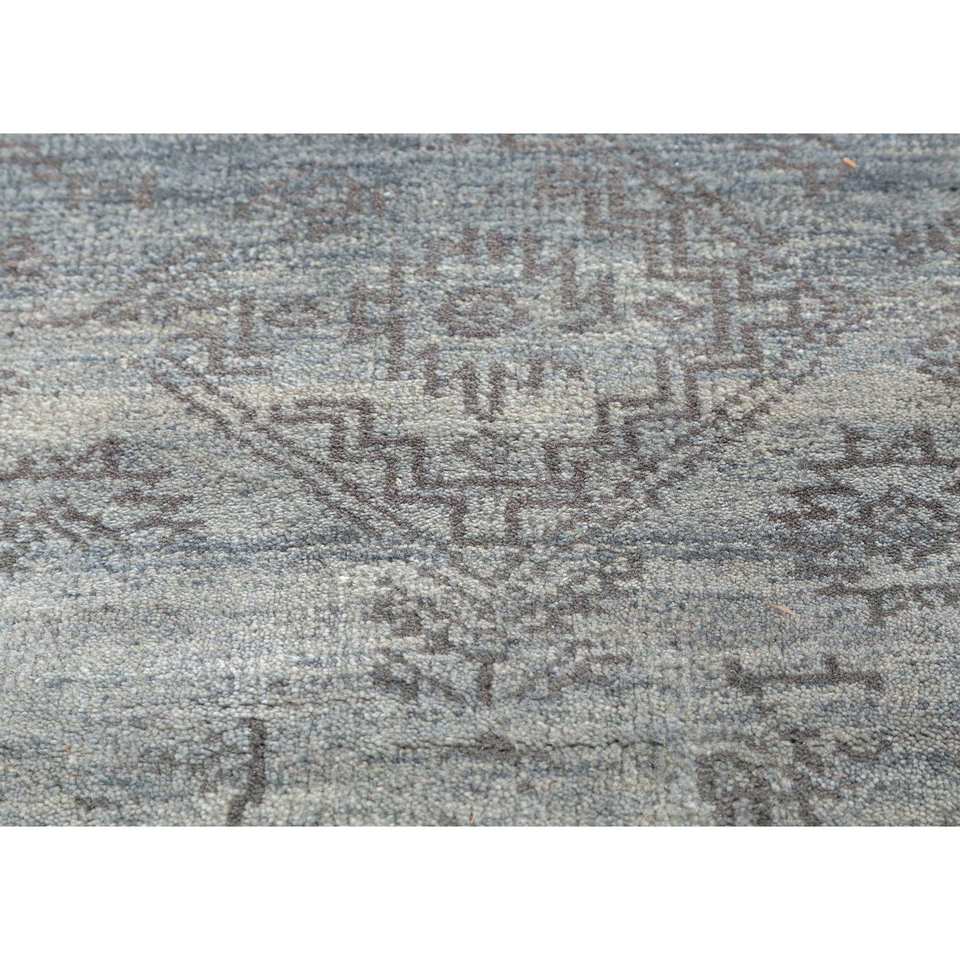 Alfombra de Lana Geométrica Azul Savana 9x12 Rectangular con Patrón de Rompecabezas para Entrada del Hogar, para Adolescentes, Anudada a Mano, 10mm de Grosor, Modelo LCARM-13