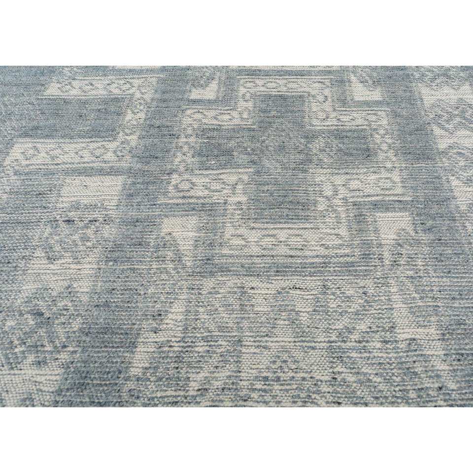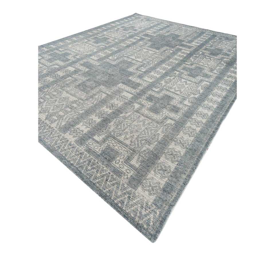 Alfombra de Lana Anudada a Mano Azul Savana, Diseño Geométrico Rectangular para Decoración de Sala de Estar, Alfombra Rectangular de 9x12 para Pasillo