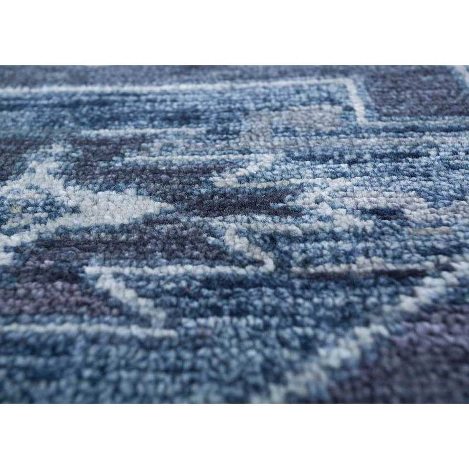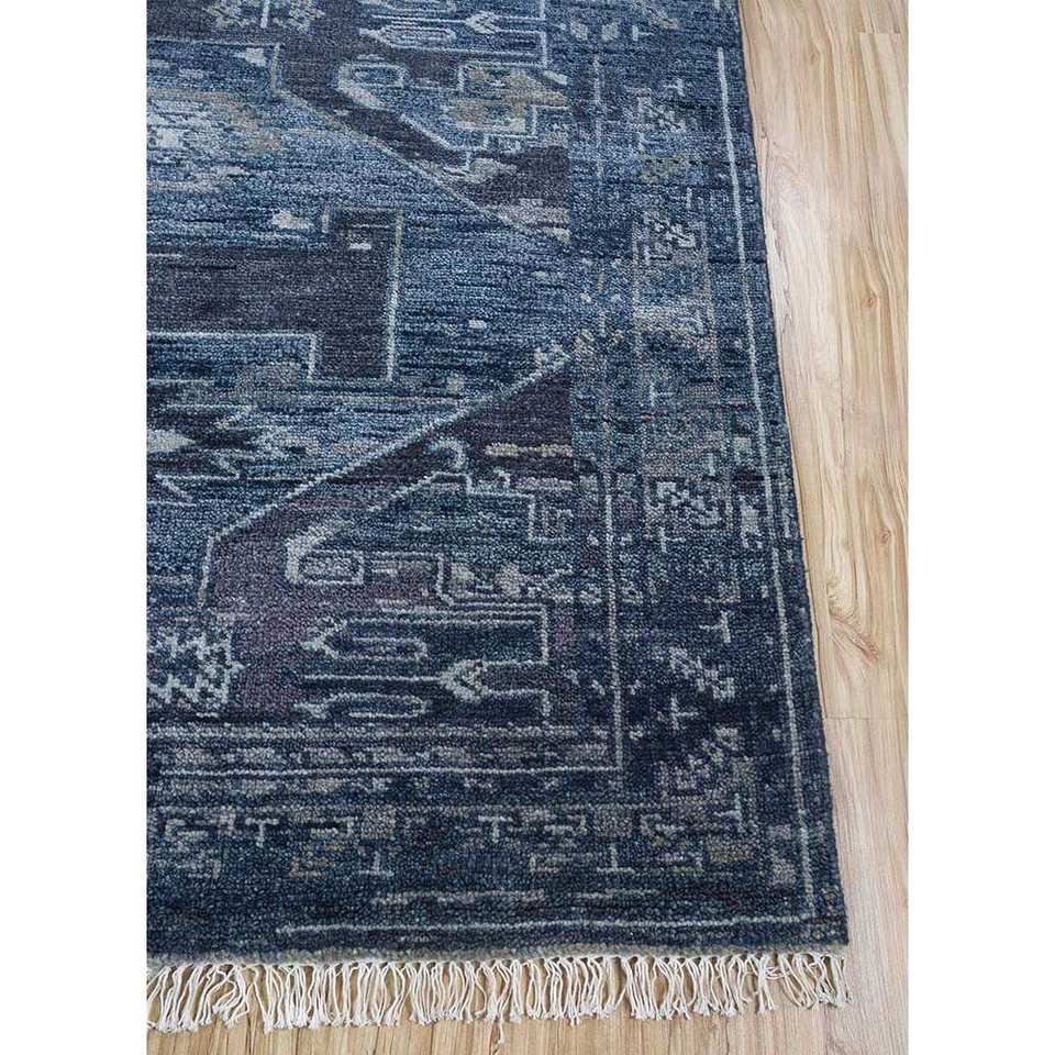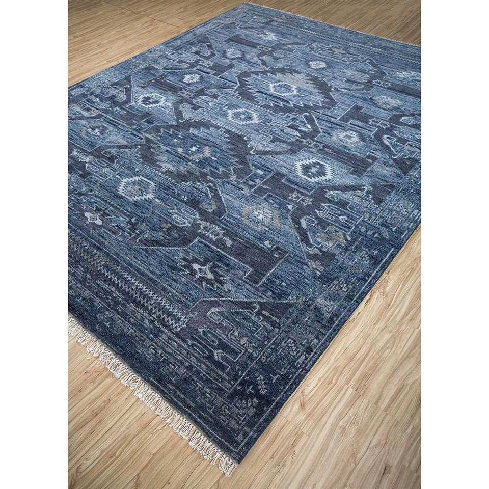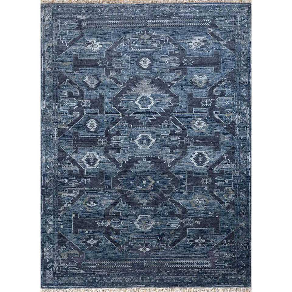 Alfombra de Lana Anudada a Mano Azul Savana, Estilo Clásico Geométrico, Rectángulo Grande para Sala de Estar, Pasillo, para Adolescentes - Lca-32 (Cs-03)