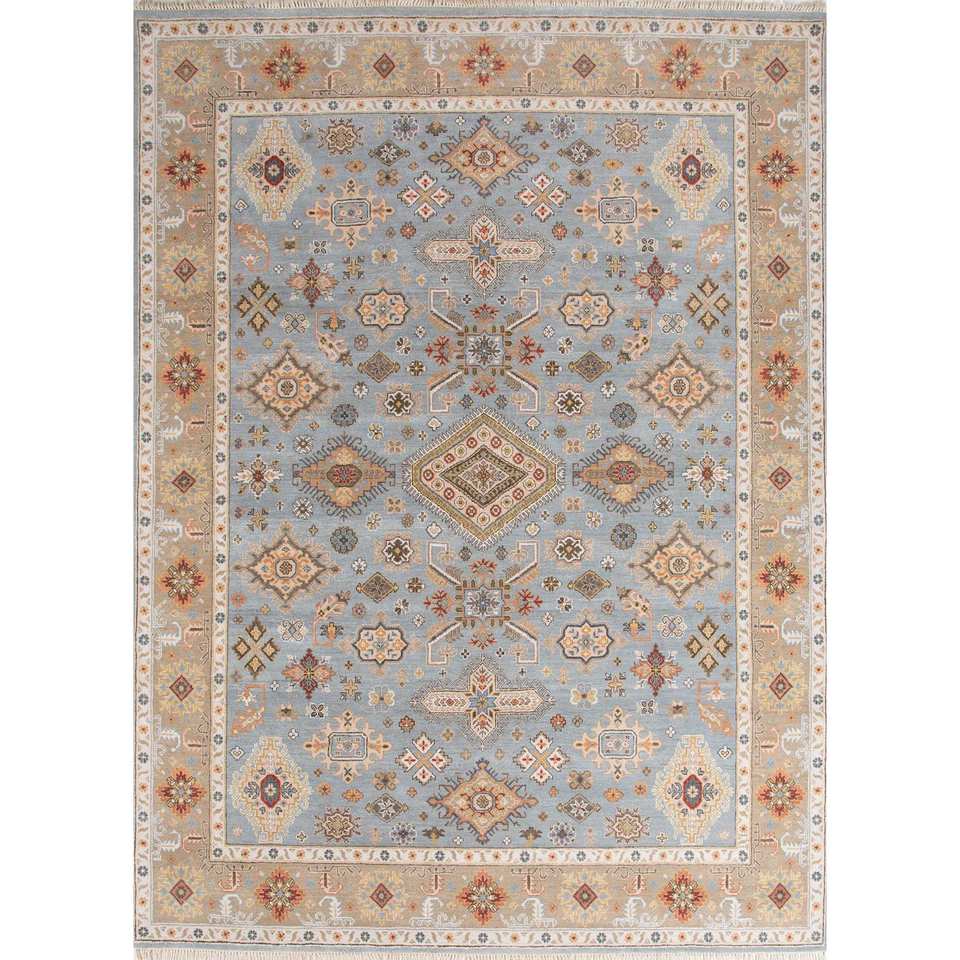 Alfombra de Lana Anudada a Mano Azul Savana con Patrón de Medallón para Sala de Estar, Alfombra Rectangular de 9x12 para Decoración de Pasillo, para Uso Doméstico - EPR-1507