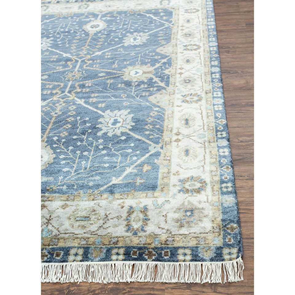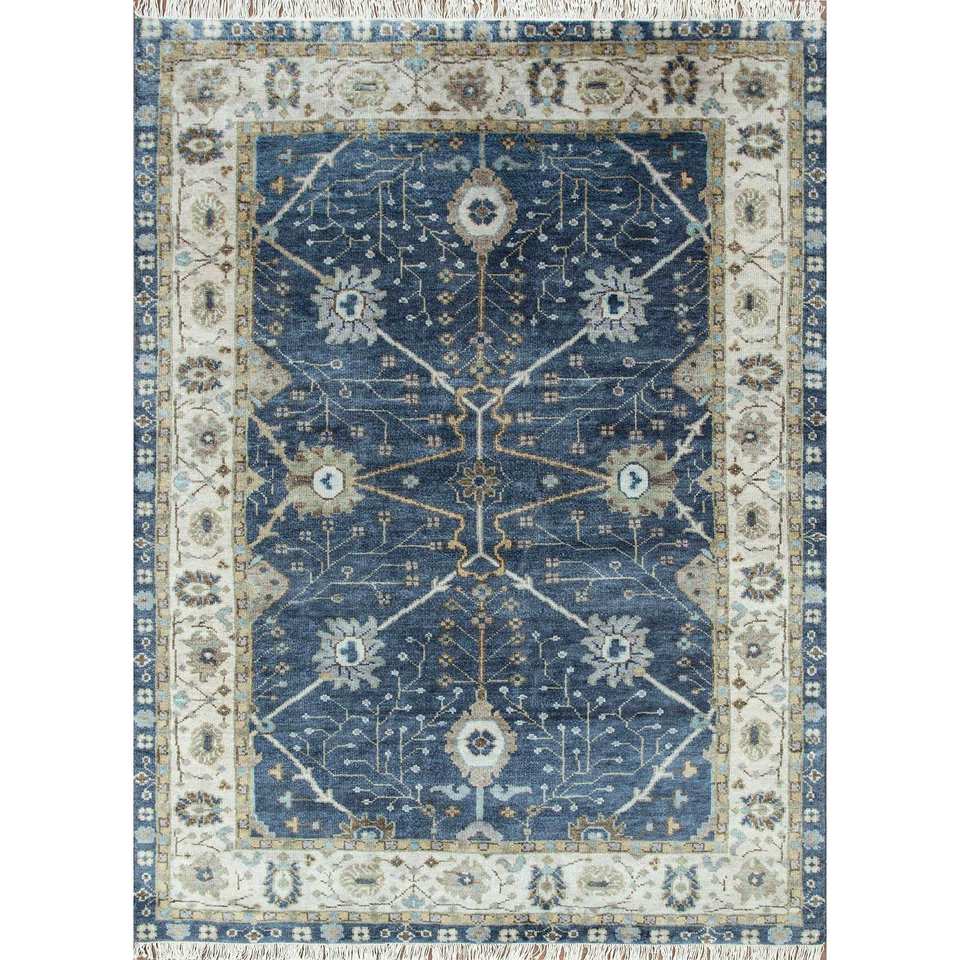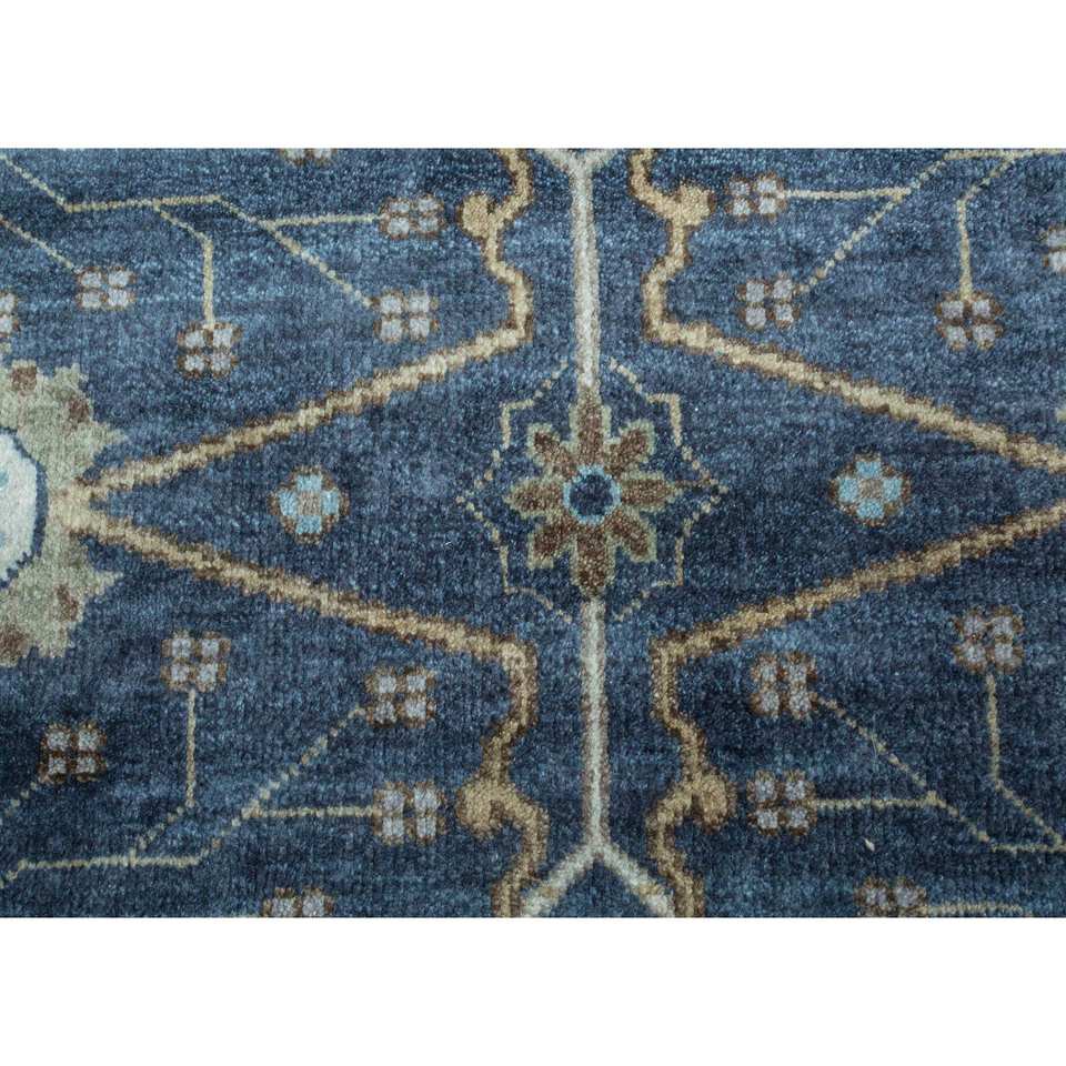 Alfombra de Lana Anudada a Mano Azul Savana PKWL-2105 para Uso Doméstico - Medallón Rectangular con Diseño de Patchwork para Sala de Estar, Pasillo y Entrada