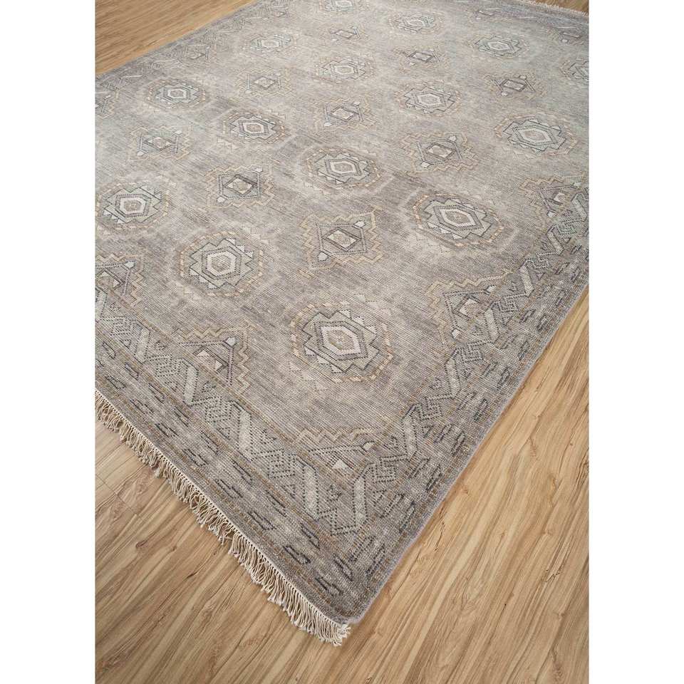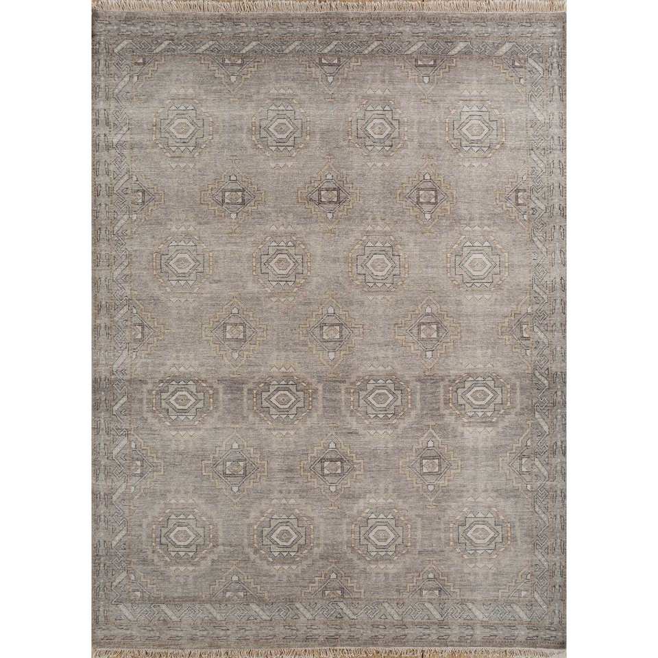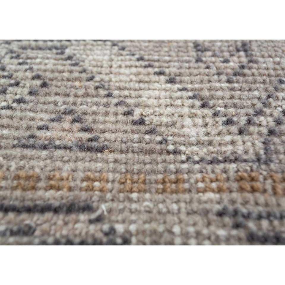 Alfombra de Lana Anudada a Mano Savana Gris y Negra AKWL-1281 con Patrón Geométrico y Abstracto para el Hogar, Pasillo y Sala de Estar, Rectangular
