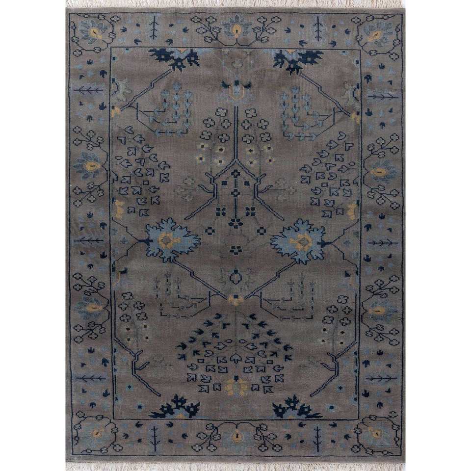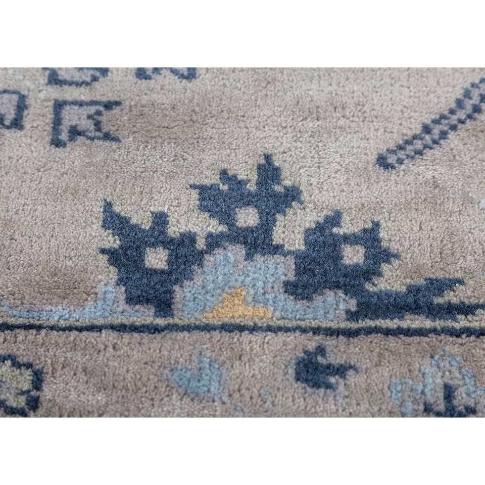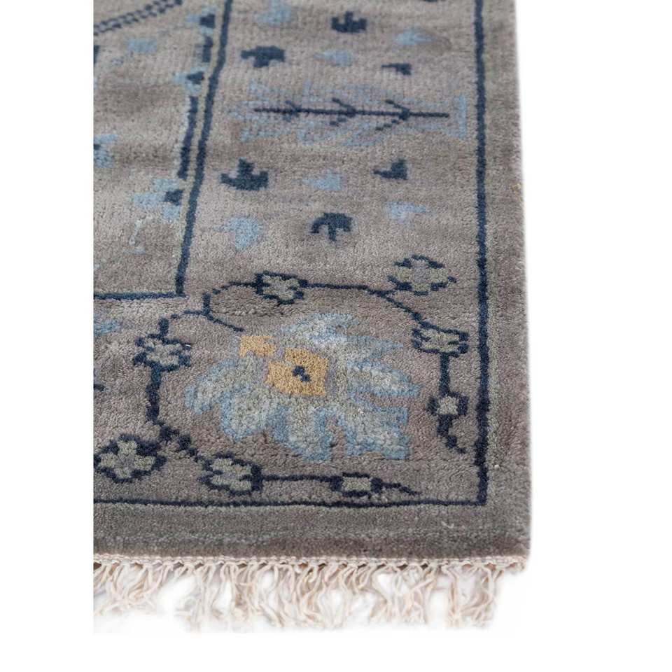 Alfombra de Lana Anudada a Mano Savana, Gris y Negra, con Diseño Abstracto de Medallón Rectangular, Hecha a Mano, Modelo LCARM-603, para Sala de Estar o Pasillo
