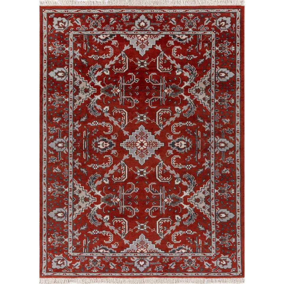 Alfombra de Lana Grande Savana, Tejida a Mano, Diseño Kilim con Medallón Rojo y Naranja, para Entrada del Hogar, Rectangular 9x12, AKWL-13007