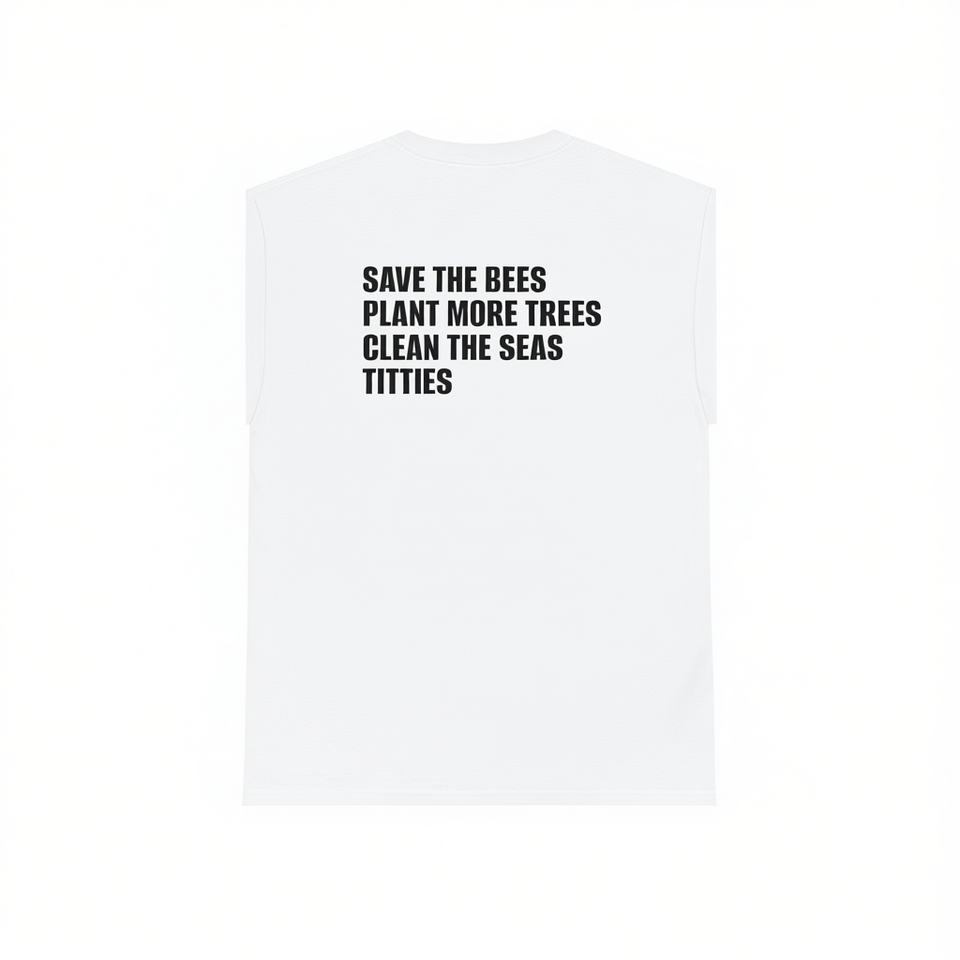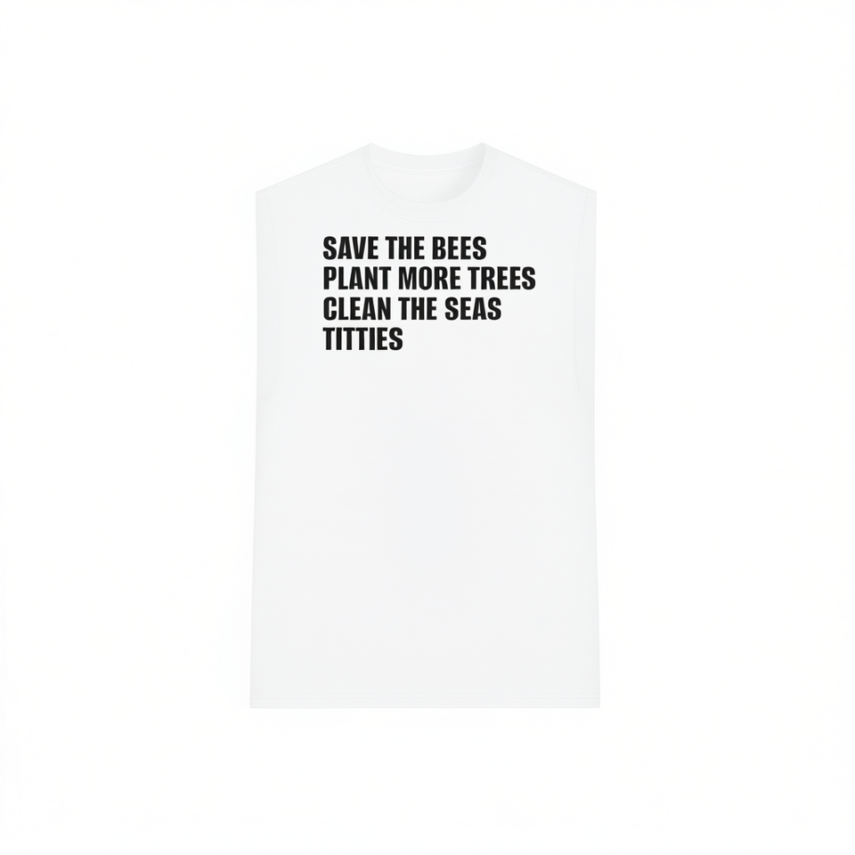 Camiseta sin mangas con estampado de abejas, plantas y cielos limpios, ropa con mensaje ambiental