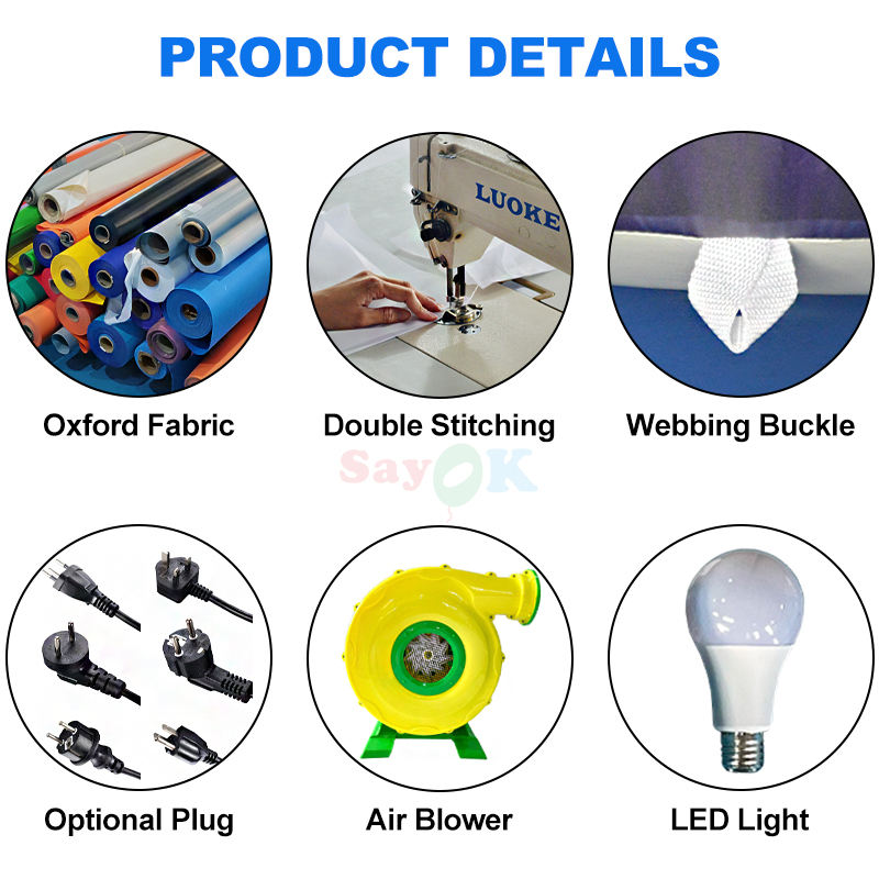 Soplador de aire, led, unidad de control remoto, kits de reparación, cuerdas, sacos de arena