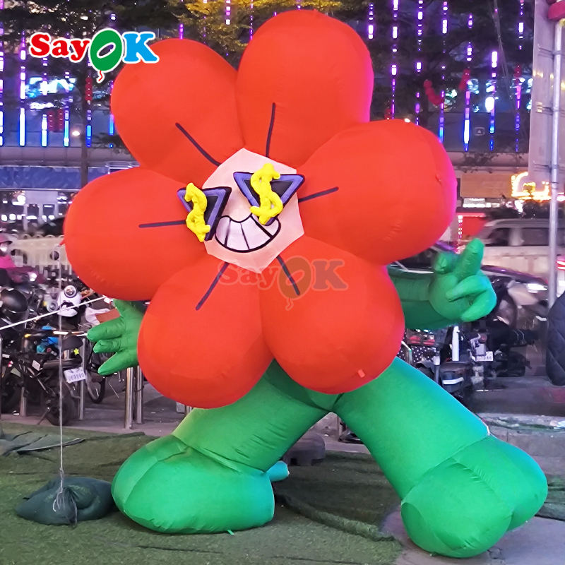 Sayok, maceta de flores inflable gigante, decoración comercial, luz LED, flor rica inflable con Base