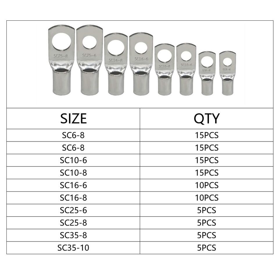 Kit de Terminales de Anillo de Cobre Serie SC, 100 Piezas, Conectores de Crimpado Estilo Europeo, Terminales de Cable de Cobre Puro de 4-35 mm²