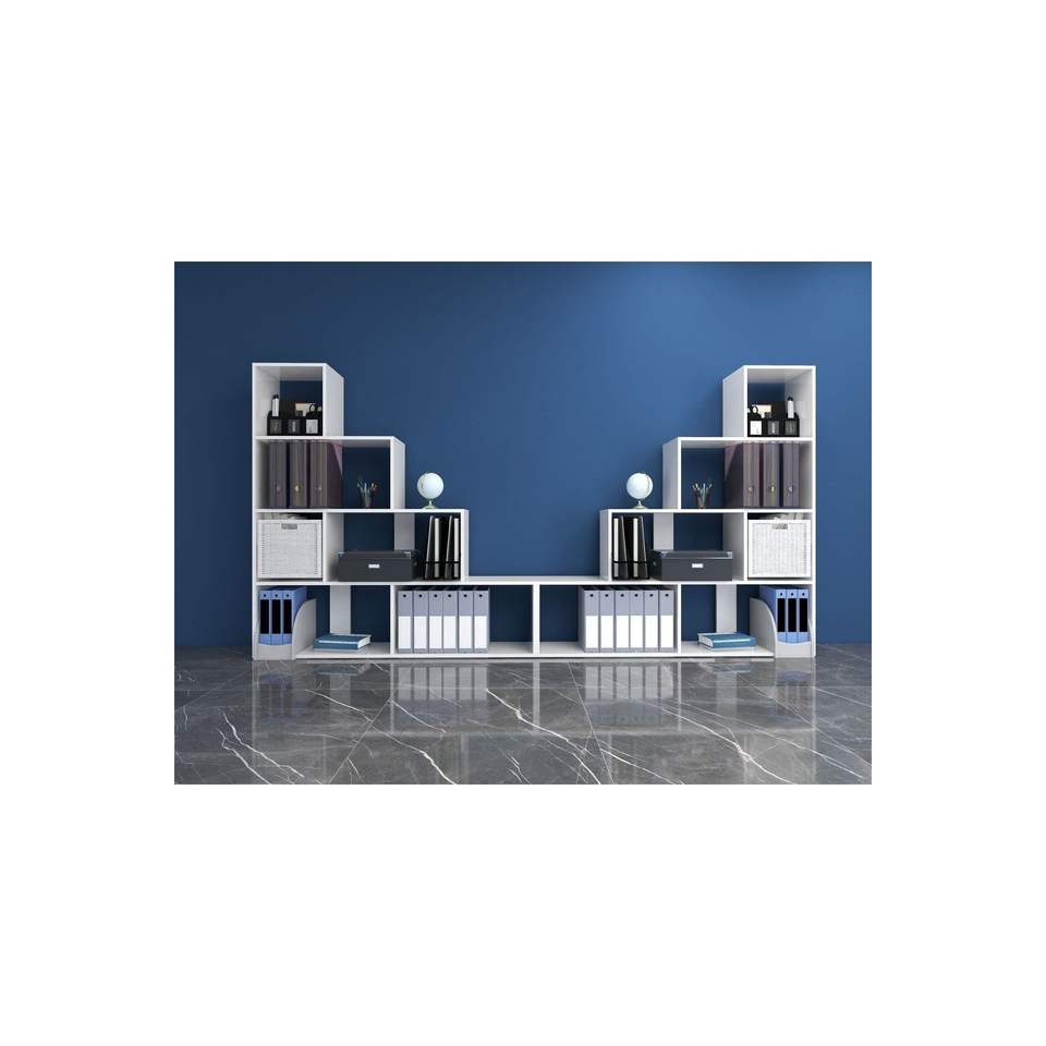 Estantería Escalera de Diseño Moderno Hecha a Mano Scala, Blanca, de 6 Niveles, Suntalam, Organización para Oficina y Sala de Estar, Hecha en Turquía