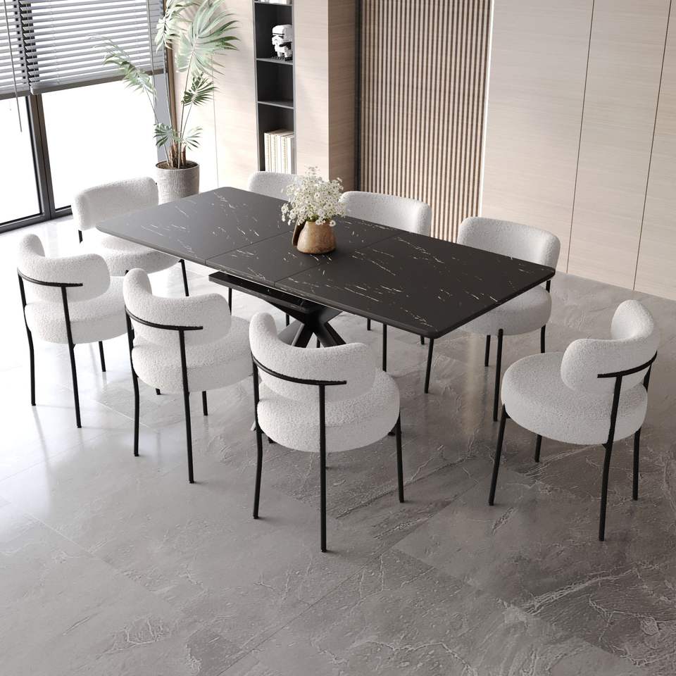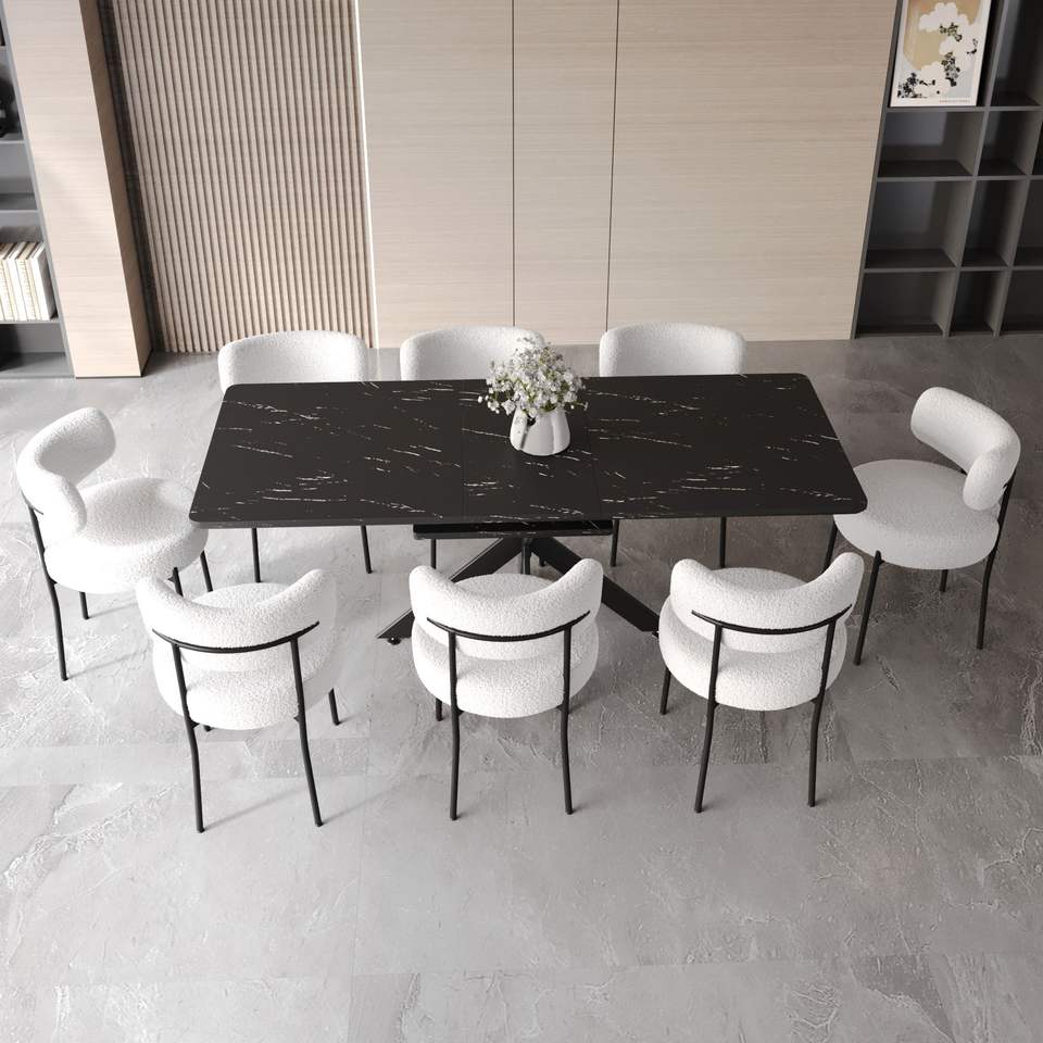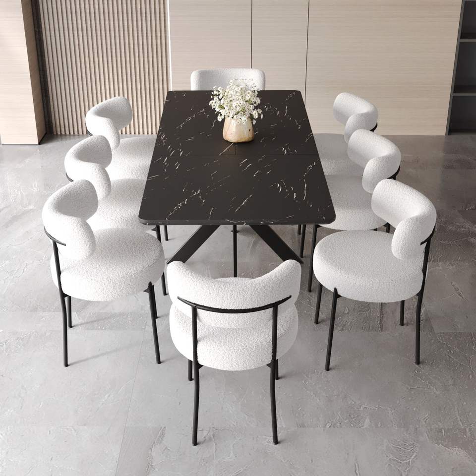 Juego de Mesa de Comedor Tapizada con Respaldo Curvo Escalable para 4-8 Personas, Silla Sin Brazos con Acolchado Suave para Comedor