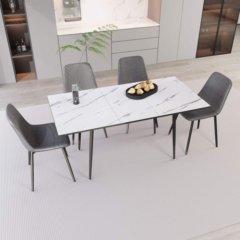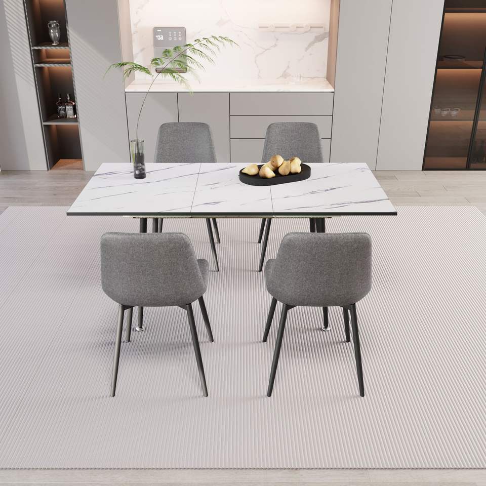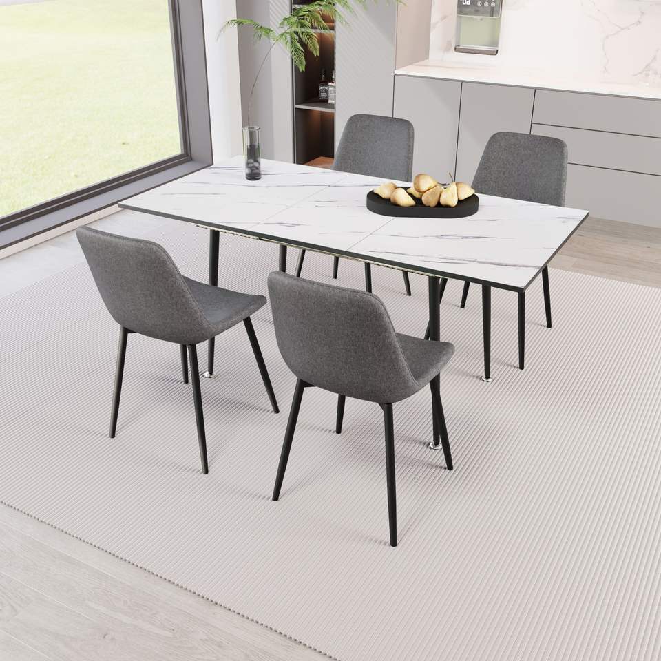 Juego de Mesa y Sillas de Comedor Modernas de MDF Escalable, Elegante Mesa Blanca con Sillas Grises para 2-6 Personas, para Comedor Moderno