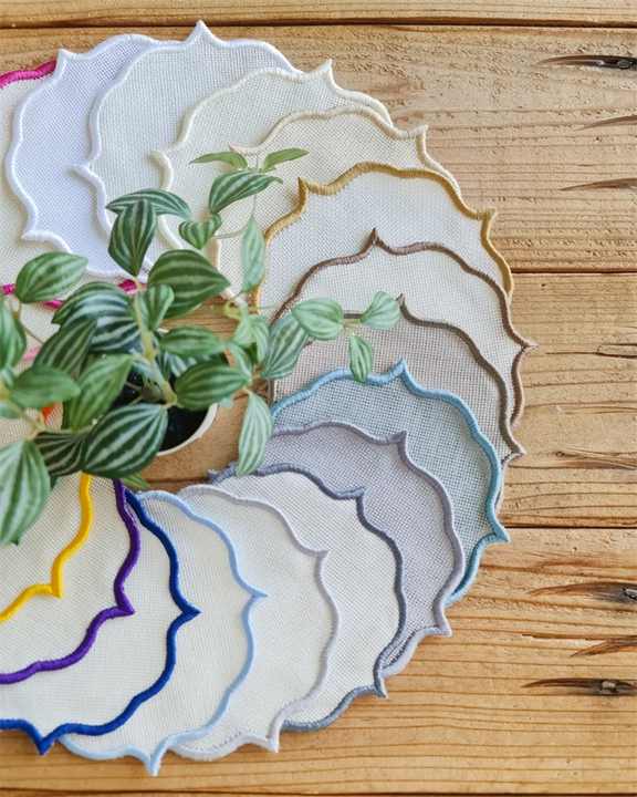 Product Name:Cotton linen scalloped cocktail napkin place mats